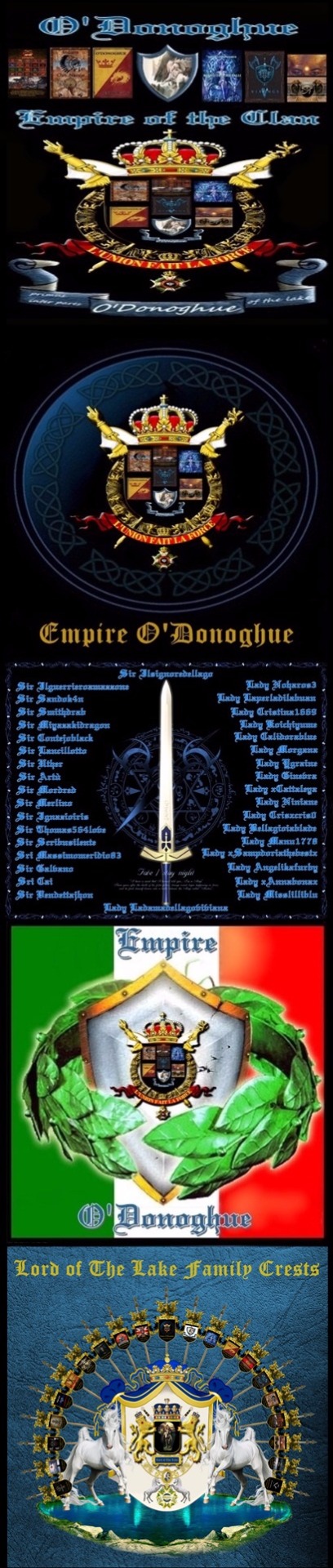 *Ambassador (22): Empire Tudor -Lollo Clan Biker MC -Empire O'Donoghue -Regno dei Cristalli -Empire Amazzoni -Regno O'Donoghue Cristina -Empire LeTigri di Mompracem -Empire Golden Angels -Empire Dark Blue Vampires13 -Empire Red Tiger and Black Dragon -Regno Pendragon O'Donoghue -Empire Captain Abyss -Empire Black Sails- Empire Iron Fist -Empire Shannara -Empire PolDark Edwar -Clan Vikings O'Donoghue -Indians Clan Navajo -Regno Horus -Legione IV Felix - Mongol - Lollo Clan U.S.A